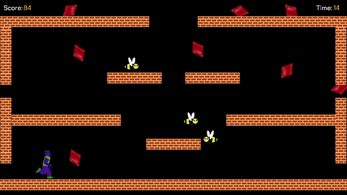 Gems are worth 5 points each, if you finish a level before time runs out, you'll get 1 point for every second left on the clock. After every 4th level, an asteroid hits and a new epoch starts with less time on the clock for each level! Touch an enemy or fall in a hole and you'll have to start over. (at epoch 1 with 0 points)